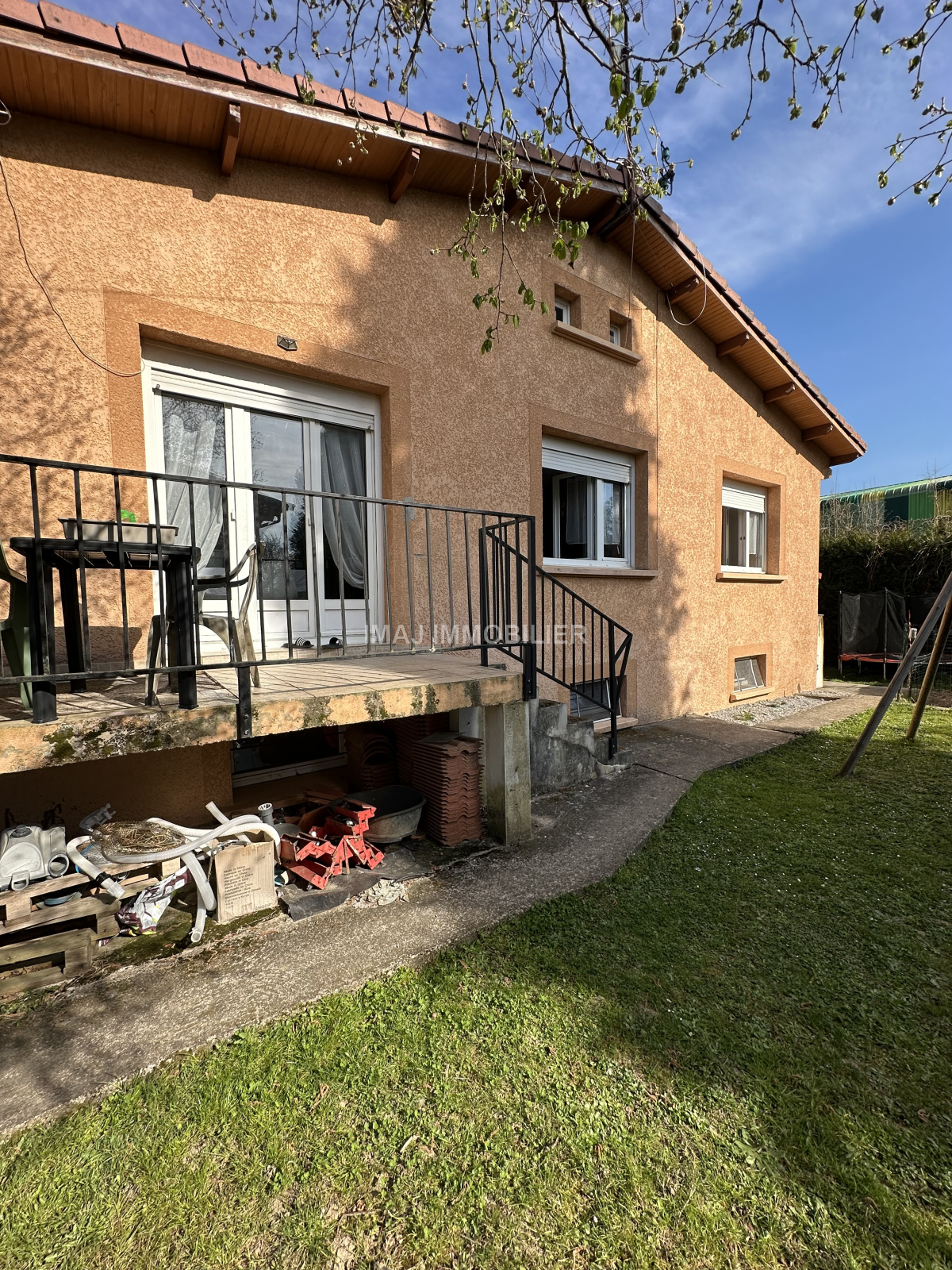 AT9185 Exclusif RAMBERVILLERS maison plain pied sur sous sol de 106m2 composée d'une entrée, une cuisine équipée ouverte sur salon séjour avec accès balcon, 2 chambres, salle de bains, WC. Au sous sol 2 chambres, 1 bureau, buanderie et chaufferie ( GAZ de ville ) , Garage. Terrain de 561m2. Energie D