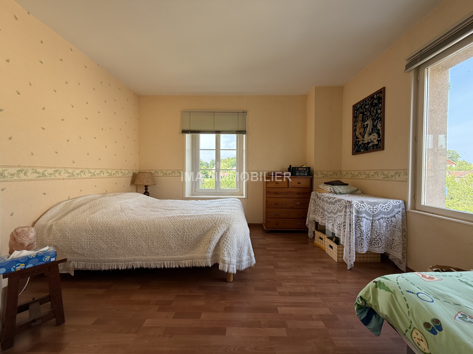 Au 1er étage : Un espace dressing donnant sur une vaste chambre (22m²), un dégagement avec une partie aménagée en espace bureau, une seconde chambre (d'environ 12m²), une salle d'eau avec douche à l'italienne, un WC séparé, un second dégagement avec séchoir, accès aux combles aménageables avec une première partie sur dalle béton d'environ 50 m², une seconde partie d'environ 45 m² aménageables également.