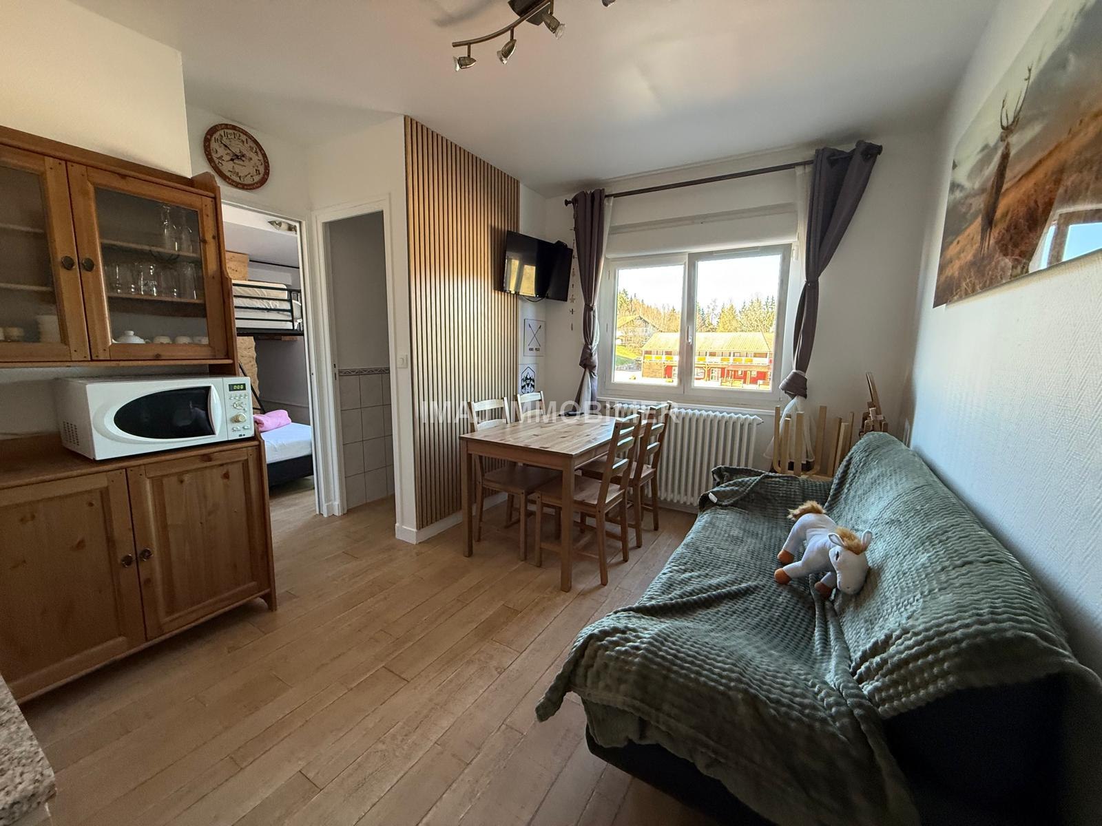 Directement sur les pistes de la Mauselaine , Appartement meublé entièrement de 28.57m2 au 1er étage +un grenier de 8m2 ( loi carrez , 25m2 au sol) aménageable. Il est composée d'une entrée donnant sur une cuisine équipée, une salle d'eau, un Wc , une chambre double ( 4 couchages ) .